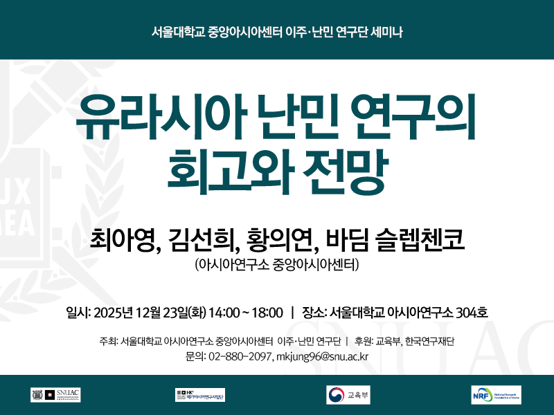 editor2026-01-30T12:13:58+09:00서울대학교 아시아연구소 중앙아시아센터 이주·난민연구단은 2025년 12월 2일 화요일, 하태역 [...]