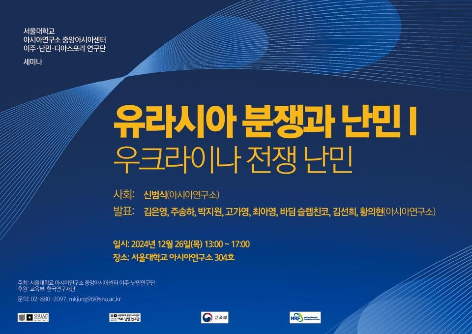2024년 12월 13일 서울대 아시아연구소 중앙아시아센터 이주난민연구단은 한국이민학회와 서울대 [...]